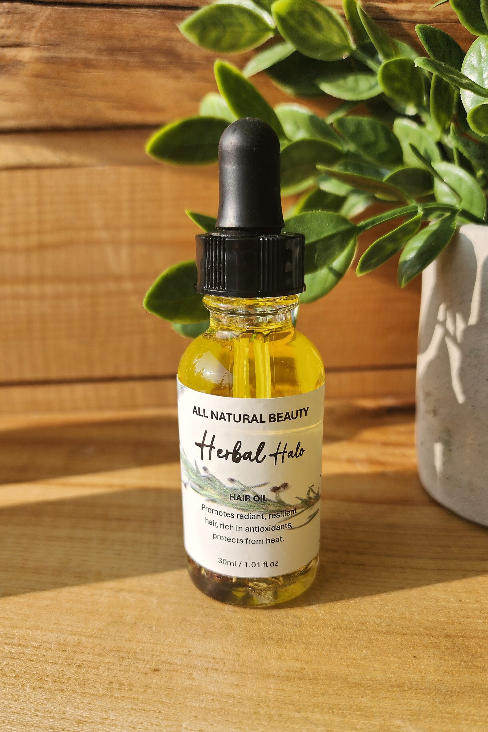 Nourish. Strengthen. Shine. Herbal Halo unveils its latest botanical blend—a luxurious jojoba oil infusion enriched with the potent essences of rosemary and cloves , and powered by a nutrient-rich mix of Aargan oil, sweet almond oil, grapeseed oil , and sunflower oil . Carefully crafted to support scalp health and promote radiant, resilient hair, this multi-functional oil is your new go-to for deep nourishment and natural vitality. Key Benefits: Stimulates Hair Growth : Rosemary and clove work synergistically to improve circulation and promote healthy hair growth from the root. Strengthens Hair Follicles : Jojoba oil mimics the scalp’s natural sebum, reinforcing each strand and reducing breakage. Deep Hydration & Shine : Argan and sweet almond oils penetrate deeply to moisturize dry hair and restore a silky, glossy finish. Soothes Dry Scalp : Grapeseed and sunflower oils are rich in antioxidants and fatty acids that calm irritation and help balance scalp oils. Protects Against Damage : Rich in vitamins E and A, this formula shields your hair from heat, pollution, and environmental stressors. Non-Greasy & Fast-Absorbing : Lightweight and residue-free, perfect for daily use or as an overnight treatment.